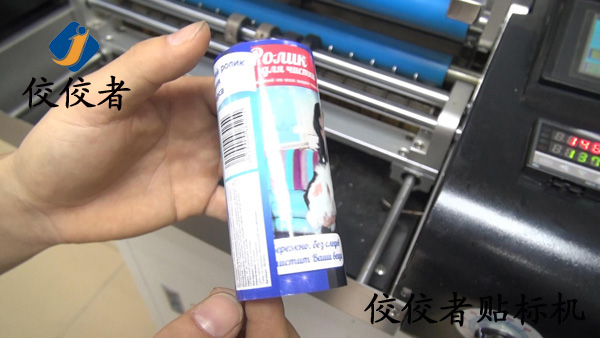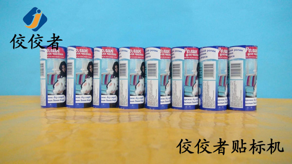 下圖是膠筒(塑料小圓筒)貼標機貼標樣品圖片:
