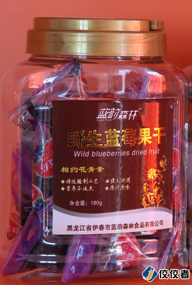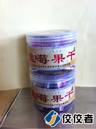 上圖的這個產品就比較大了.和前面的三個樣品的直徑比起來那要把上一倍.不過全自動圓瓶貼標機就是有一個特點.對走私的適應性比較大.只要在合理的大范圍內.都是可以貼的.所以上圖的這個大直徑的野生藍莓果干,也是可以貼的.